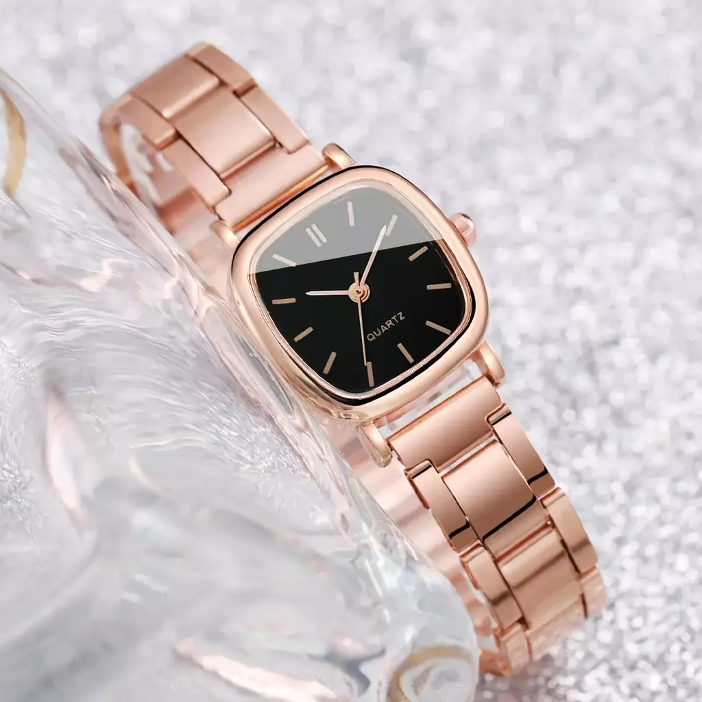 Realce sua elegância com este conjunto de relógio feminino quadrado com pulseira de aço inoxidável e pulseira de coração. Uma combinação perfeita de estilo moderno e charme delicado para complementar o seu dia a dia!