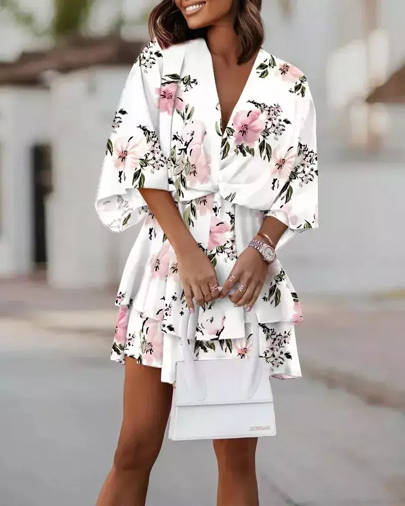 Vestido Estampado Feminino com Decote V e Manga Morcego – Leveza, Conforto e Estilo para Todas as Ocasiões